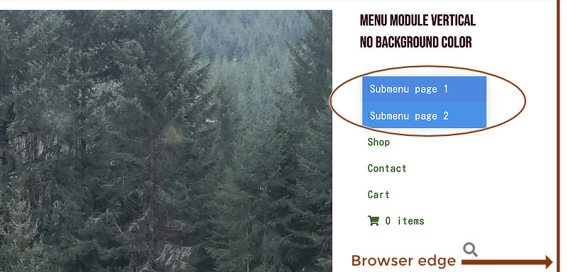 If the vertical menu is in the rightmost column, the submenu displays to the right if there is room between the right edge of the menu and the edge of the browser screen, as shown in this screenshot.