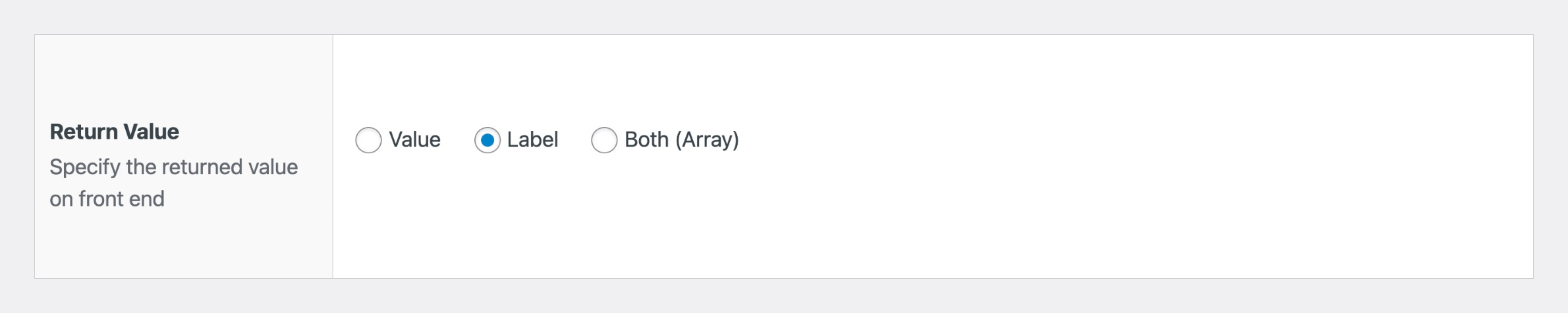 The Checkbox field connection can output either the Value or Label from the Checkbox field Return Format setting.