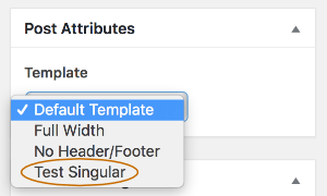Just to help us remember the purpose of that custom file, we'll follow the WordPress global template naming suggestion and usepage_followed by the template name we want to use:page_test_singular.php